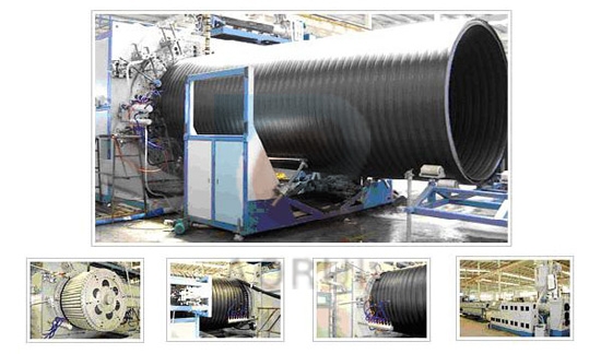 公司吸收国内外技术研发的大口径HDPE埋地缠绕管生产线和大口径FR-PP缠绕管生产线可生产直径φ200-φ2000的优质排水管道。该管材越来越成为城市排水管材的主流产品并将逐步取代钢管、水泥管、以及其他塑料管材。 该生产线有异型管挤出机、熔接挤出机、缠绕成型机、切割机、以及相关辅机构成,具有生产量大、生产效率高、运行稳定、管材环刚度高、单位米重小、抗蠕变性能优、连接方便和施工经济等优点
